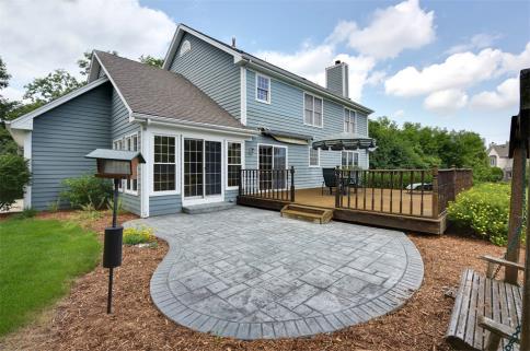 Tucked behind a stand of mature trees, this 4 bedroom Colonial's floor plan is perfect for the family in motion! Kitchen features quartz countertops, large island, new flooring and is open to the bright sunroom with new windows. Family room has brick, raised hearth gas fireplace. Entertain in the formal dining and living rooms. Stunning master suite boasts newly renovated bath featuring heated porcelain tile floor, granite-topped maple vanity with dual sinks & oversized shower with frameless glass enclosure. 3 more bedrooms share squeaky-clean full bath. 2 sliding doors off kitchen and sunroom lead to a 20x22 deck and stamped concrete patio. Beautifully landscaped lot has inground sprinklers. Air conditioning new in 2014. Close to shopping, YMCA and freeway access. 1 year home warranty for added peace of mind.