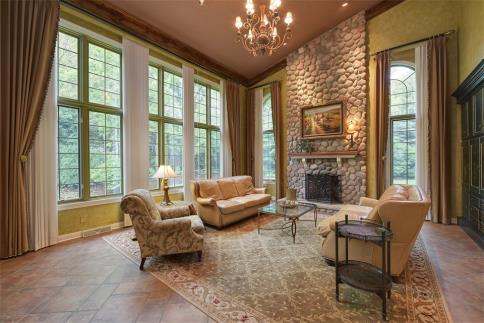 Palatial space, unparalleled quality, and relaxing comfort. An impressive circle drive winds under mature trees, past lush lawns and a bronze statue and fountain to a stately brick home. Amazing architectural details and custom finishes enhance every room. A two-story foyer with circular staircase, beautiful woodwork, walls of windows, 10 to 18 ft coffered, tray and cathedral ceilings, 5 fireplaces, hardwood and heated tile flooring. The chef's kitchen with 3 sinks, 2 dishwashers, SubZero and U-Line refrigerator drawers, Thermadore convection and warming ovens, 6 burner gas stove, granite counters and custom cabinetry. Whether your gatherings are formal or casual, this home was designed to accommodate family and friends with exceptional space and amenities. A 2-story family room with floor-to-ceiling fireplace and windows is adjacent to the kitchen and sunny dinette. Multi-generational living is made easy with a second staircase with power lift and a bedroom with a private bath. Other bedrooms feature huge walk-in closets. A stunning master suite is complete with a fireplace, sitting area, two walk-in closets and a spa-like bath with whirlpool tub, multi-head shower, and two separate vanities. An exposed lower level with a 5th fireplace, wet bar/kitchenette, a dan studio/exercise room, billard room or 5th bedroom and a 4th bath provide additional living and entertaining space. this home will express the high standard of living you deserve!
