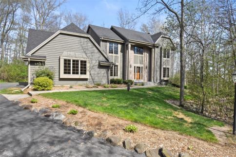 Original owner offers this Trustway-built quality home amidst a tranquil 1.02 acre wooded setting. 3 bedroom, 2.5 bath Colonial with exposed lower level. Real hardwood floors flow through the kitchen, dining room and foyer. Family room is open to the kitchen and offers brick natural fireplace and french doors to living room. Large kitchen features natural stone counters, stainless steel appliances and tons of cabinets! Formal dining room ready for your holiday dinners! Upper master suite offers walk-in closet and private bath with ceramic tiled shower and whirlpool tub. Two more bedrooms with vaulted ceilings offer indirect lighting. Essential, built-in loft office includes built-in bookcases. Main floor utility room. Private wooded lot offers concrete patio and fire-pit. Wonderful perennials with an abundance of coneflowers. Roof and exterior painting done in 2020.