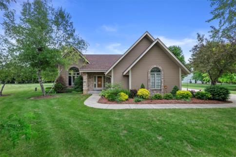 This 3,236 sq/ft contemporary Cape Cod offers space, style & comfort on a beautifully landscaped 1.5-acre cul de sac lot. Sun-filled, window-wrapped sunroom. Dramatic two-story LR with floor-to-ceiling stone NFP. FR w/HWFs & slider to yard. Spacious kitchen features center island, BB & slider to patio—perfect for entertaining. All 3 BRs are upstairs, each with walk-in closets, including a generous master suite with a skylit bath ready for your spa-inspired remodel. Every room in the house is a generous size! Fresh interior paint, new carpet, and a newer roof and siding add peace of mind. A tiled laundry/mudroom, 2nd basement access from the 3.5 car garage, and a concrete patio overlooking the spacious backyard complete the package. Roof 2018, Furnace 2016, AC original. 1 year Home Warranty.