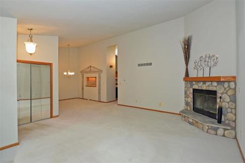 Tucked into Jacobus Park at the end of a cul-de sac, this comfortable condo offers a striking , open floorplan. The large living room with a soaring ceiling features a corner gas fireplace and large picture window overlooking a private garden / courtyard. The dining room with built-in china / curio cabinet is adjacent to the kitchen. Surrounded in cabinetry and counter space, this convenient work space is complete with appliances. The master bedroom is large enough to include a sitting or home office space. Both bedrooms have ample closet space and lots of natural light, and bathrooms are well designed. A private, full basement provides storage or additional entertaining space. Close to grocery stores, shopping, restaurants and adjacent to the Oak Leaf bike trail.