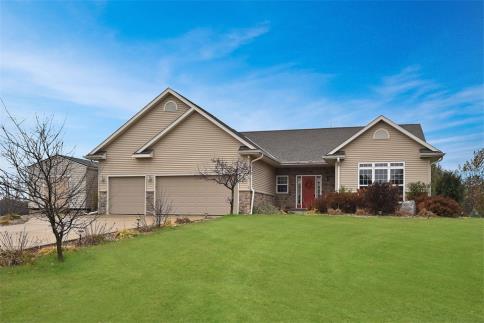 Best cul-de-sac lot in the subdivision! Stretched out on 2.33 acres includes deck with Pergola, fire pit, fenced raised bed gardens and private wildlife-filled views! Open concept split bedroom ranch offers kitchen with island, pantry and stainless appliances. Large dining area open to living room with stone gas fireplace as focal point. Big master bedroom suite includes walk-in closet and private bath. Exposed lower level has family room which includes a movie theatre with big screen, projector and bar area. Plenty of storage. Heated 3 car attached garage. Bonus 14x20 workshop with TV adjacent to house. Pear and Cherry trees. Kewaskum Schools. Short drive to West Bend. Total peace and quiet. Open land behind home used to be a fairway for a golf course, but for the last 3 years has been farmed.
