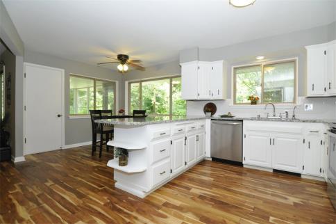 Private ranch home set way off the road is surrounded by 3.29 acres of mature trees, open space and a wildlife pond. The circle drive, perennial gardens & outdoor brick grill invite entertaining. Extensively updated interior boasts BEAUTIFUL Acacia wood floors, granite counters, subway tile backsplash and stainless steel appliances in the kitchen. Both remodeled baths are gorgeous and could be straight out of Pottery Barn! 3-season room & family room connect to the eat-in kitchen. Office/4th bedroom with separate outside entry could be home office? Newer roof/furnace/water heater/electrical and pressure tank. Second 3 car garage for hobbyist/storage. A seller provided home warranty is included for added peace of mind. This is the perfect home for the nature-lover, birding enthusiast or just those that like privacy. Highly ranked Germantown School District is added bonus!