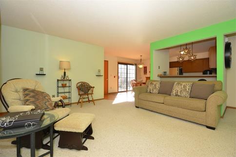 1st floor unit offers flowing floor plan from living room to dining room to kitchen. Good-sized kitchen with stainless steel appliances and double sink, newer wood laminate and convenient pass-thru to living room. Roomy dining room has newer wood laminate floor and slider to private, south-facing concrete patio. Generous master bedroom with large walk-in closet and private bath with shower over tub. Nice-sized 2nd bedroom with double door closet. Attached approximate 11x21 garage. Conveniently located close to shopping, Dretzka golf course, restaurants and Rotary Park. Simply move in!